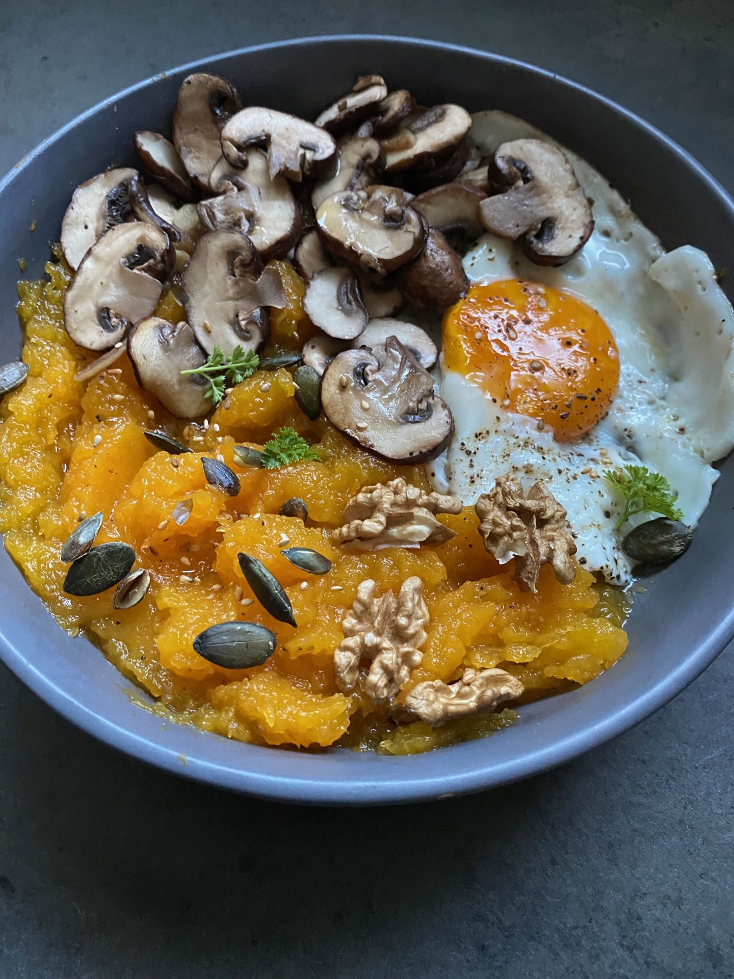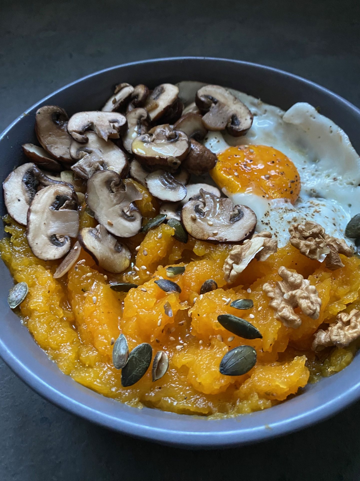 Ecrasé de courge et poêlée de champignons