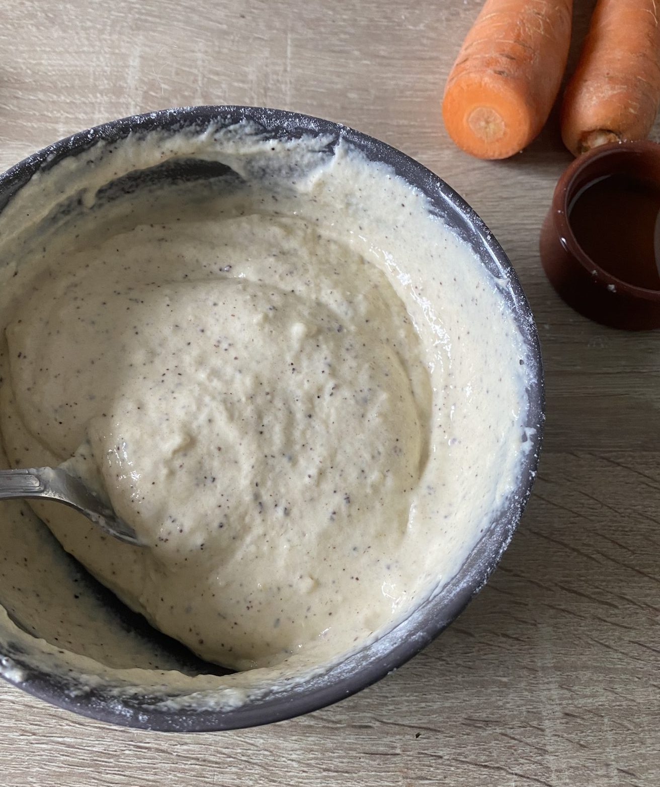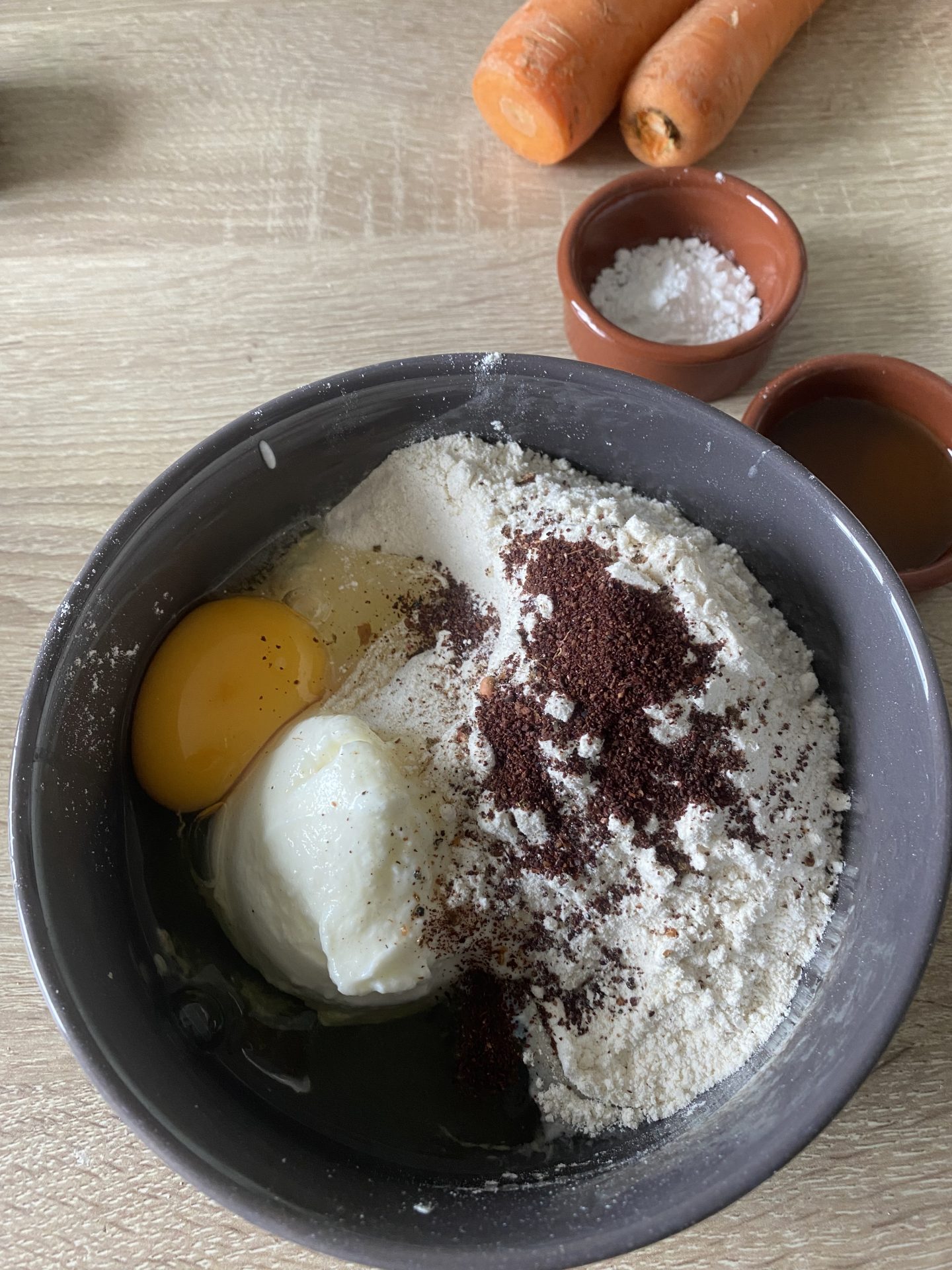 - Versez dans un saladier le yaourt nature, remplissez le pot vide avec la farine et mélangez le tout.