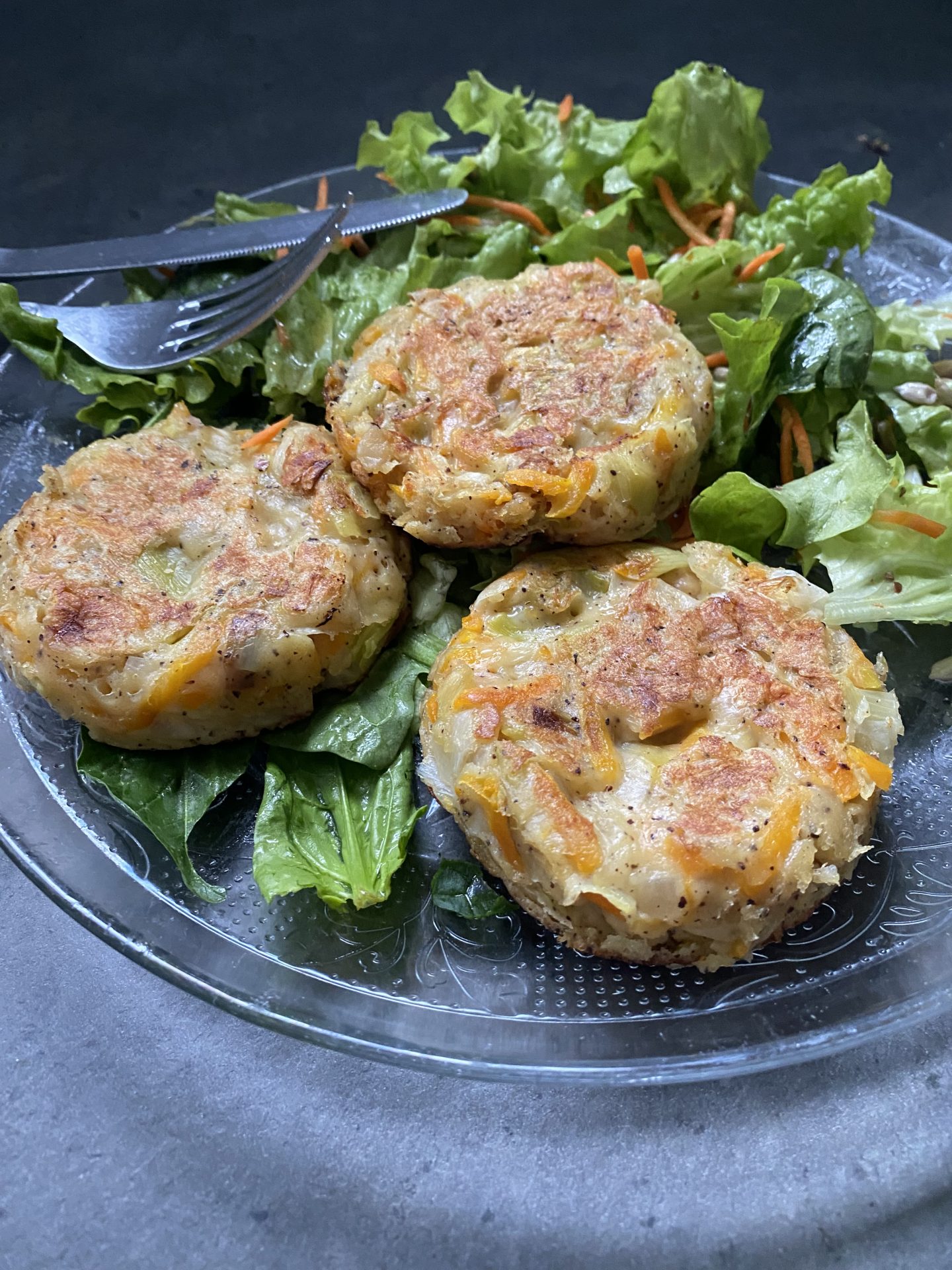 Pas toujours facile de mettre des légumes aux repas… Alors je vous invite à tester les galettes de légumes qui seront idéales pour vos repas du soir. Vous pouvez les préparer à l’avance et les faire chauffer au moment de servir. Cette recette vous permet aussi d’y mettre les légumes de votre choix, ici les poireaux et les carottes mais on pourrait cuisiner les champignons, courgettes, poivrons.