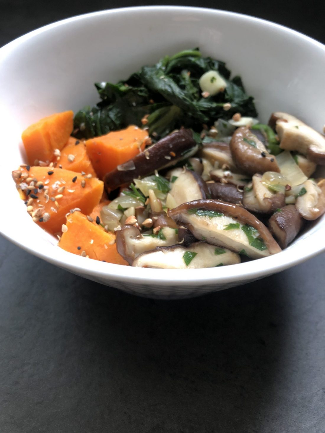 Shitaké aux épinards et patate douce